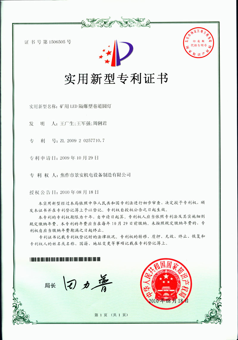 焦作景安公司始終堅(jiān)持“以科技為先導(dǎo),以市場為導(dǎo)向”的發(fā)展戰(zhàn)略,不斷進(jìn)行新產(chǎn)品的研制和開發(fā),在國家“六五”到“九五”期間,承擔(dān)和參與了國家多項(xiàng)科技攻關(guān)項(xiàng)目。并被中國電器工業(yè)協(xié)會評定為“質(zhì)量可信產(chǎn)品”。特別是在礦用防爆燈領(lǐng)域,礦用隔爆型半導(dǎo)體(LED)照明燈具,2008年列入國家火炬計(jì)劃,獲2009年河南省工業(yè)和信息化廳的科技成果二等獎,并擁有多項(xiàng)國家專利。